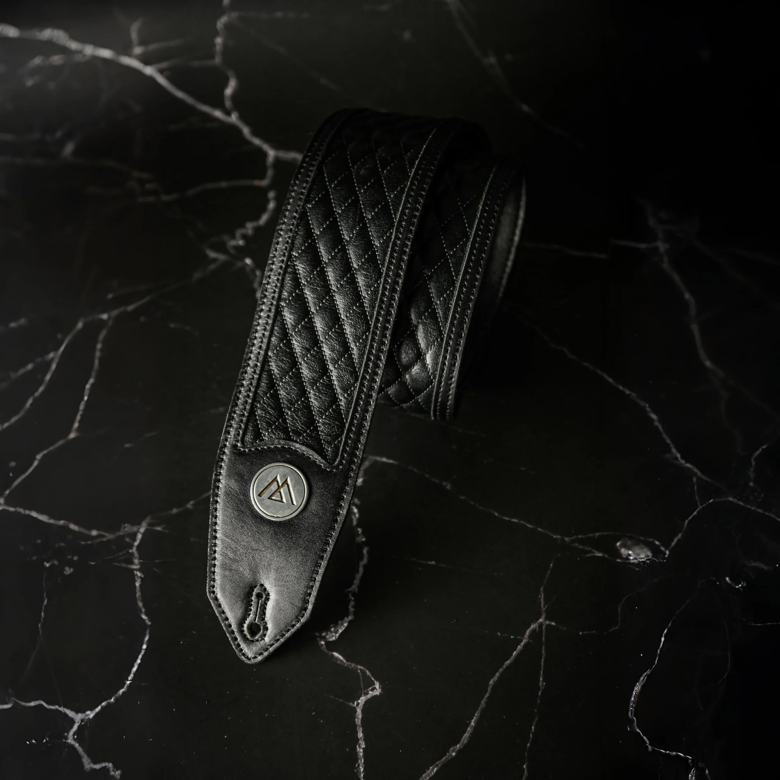 Modern Matelassé en cuero negro satinado. Ancho de 6 cm, doble capa de cuero real y diseño matelassé central que combina sobriedad y textura. Regulable entre 1,10 y 1,45 m. Precisa, elegante y hecha para durar.